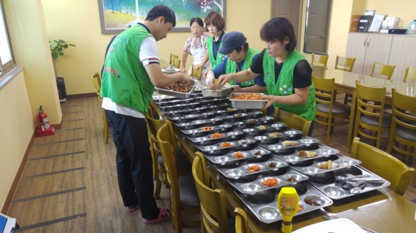 2017.08.08(화) 영주재가노인지원서비스센터에 "홈플러스 영주점 봉사동아리 한사랑회" 회원분들이 방문해 주셨습니다. 무더운 여름철 어르신들을 위한 보양식인 삼계탕 재료를 후원해 주셔서 주간보호 및 저소득 식사배달서비스 어르신들에게 점심식사를 제공해드렸습니다. 바쁜 시간 와중에도 점심 준비 및 배식에 동참해 주셔서 깊은 감사의 마음을 전합니다. 앞으로도 저희 본 센터에 많은 관심 부탁드립니다. .