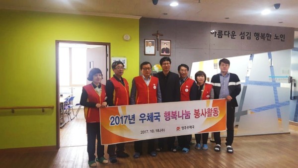 지난 18일(수)영주재가노인지원서비스센터에는영주 중앙우체국 행복나눔 봉사단차진용 국장님 외 임직원의 내방으로이용자 식사/간식 지원과함께 식사를 나누는 시간을 가졌습니다.