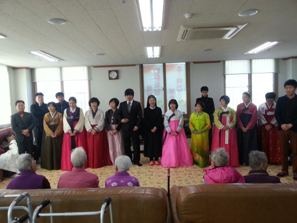 센터장님을 비롯해 직원들이 어르신들께 새해 인사를 드렸습니다 이쁜 한복을 차려입은 모습이 예쁘기만 한 어르신들께서는 직원들에게 많은 세뱃돈을 주셨다는 이야기가 ^^ 어르신들뿐만 아니라 저희 홈페이지를 찾아와주시는 모든 분들 새해 복마니 받으세요 ^^