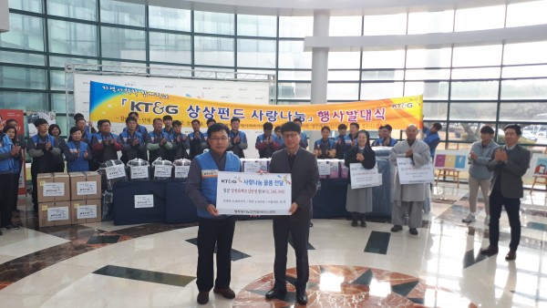 지난 11월 6일(수)에는 KT&G 상상펀드 사랑 나눔 발대식이 진행되었습니다. 이번 행사는 KT&G 영주공장에서 영주시의 독거노인, 장애인, 소년소녀가장 등 어려운 이웃에게 겨울동안 도움이 되도록 연탄, 등유, 이불, 휴지 등을 저희 센터 및 관내 기관과 연결하여 후원해주셨습니다. 발대식 이후에는 연탄 봉사가 진행됐는데요, KT&G 임직원분들과 본 센터 직원들이 함께해 어르신들을 위하여 연탄을 열심히 나르셨습니다. 따듯한 마음으로 지역발전과 더불어 어려운 이웃과 함께 해주시는 KT&G 영주공장에 감사드립니다!