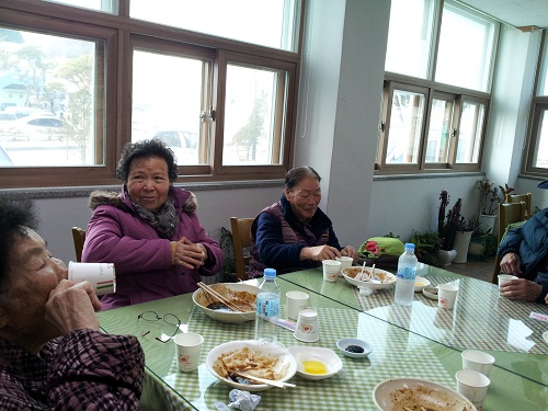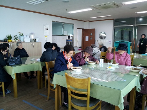 예전엔 특별한날 먹던 자장면, 수요일 본 센터에 와서 자장면 외식하고 다른 동네 친구들 만나 서로 인사도 하고.... 자장면 기다리며 레크레이션도 하고... 즐거운 시간이었다며 행복해 하셨습니다.