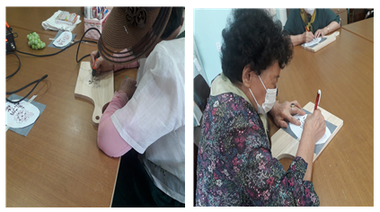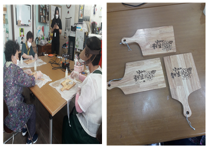 특화서비스 여가생활활동 '도마만들기'를 체험하였습니다.