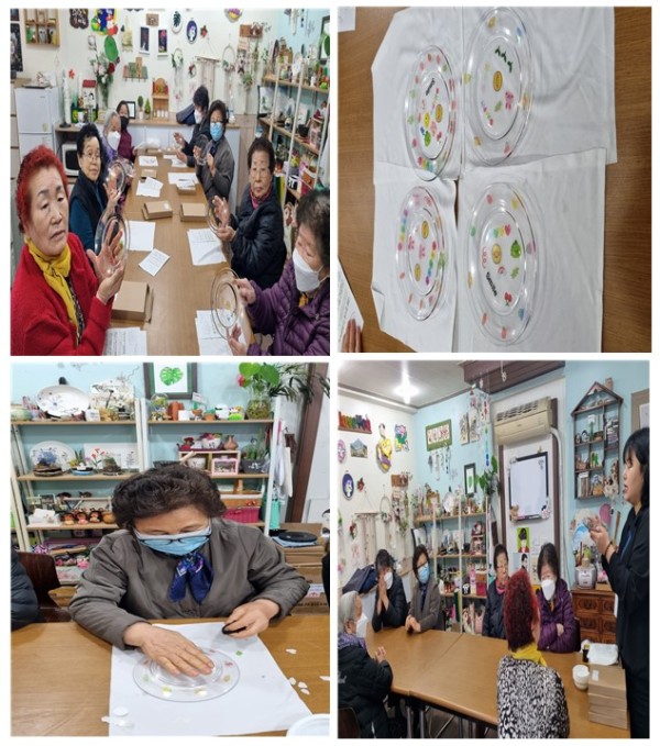 2024. 2. 21.(수) 재가노인지원서비스 체험활동프로그램 1회차를 재가노인지원서비스 이용자 8명은 디저트강화유리 접시만들기 프로그램을 진행하였습니다.