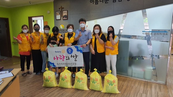 지난 2일에는 영주재가노인지원서비스센터(센터장 김한일)와 업무협약을 맺고 신임회장과 함께하는 봉사활동의 시작을 알리기 위해 ‘사랑의 쌀 나눔’ 행사를 가졌다.