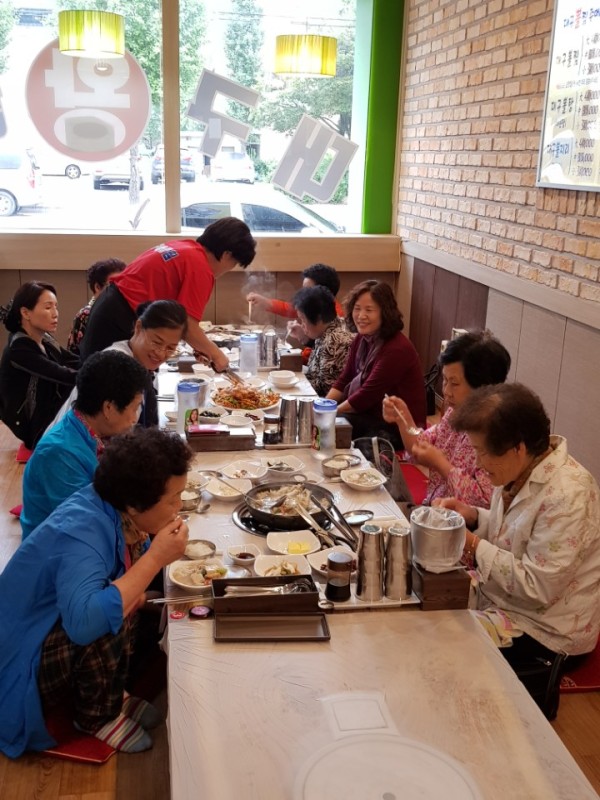 2018.9.13일(목)지역사회 자원 연계하여 이용자 외식지원사업을「대구왕뽈찜」에서 진행하였습니다. 이웃사랑과 나눔을 실천하는 사장님의 배려로 어르신들에게 따뜻한 탕과 찜을 제공해주셔서 평소 외식을 잘 못하던 어르신들이 영양보충을 하는 시간이 되었습니다. 다시 한번 후원해주신 대구왕뽈찜 사장님과 직원분들께 감사인사를 드립니다.