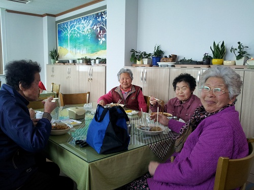 예전엔 특별한날 먹던 자장면, 수요일 본 센터에 와서 자장면 외식하고 다른 동네 친구들 만나 서로 인사도 하고.... 자장면 기다리며 레크레이션도 하고... 즐거운 시간이었다며 행복해 하셨습니다.